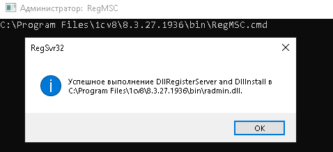 6) Регистрируем утилиту администрирования серверов 1С: