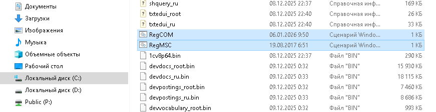 7) Регистрируем динамически подключаемую библиотеку COMCNTR.DLL, относящуюся к платформе 1С, которая обеспечивает COM-соединение для доступа к базе 1С из внешних программ. Иначе при работе с 1С получим ошибки "Класс не зарегистрирован", "Недопустимая строка с указанием класса" и т.п.