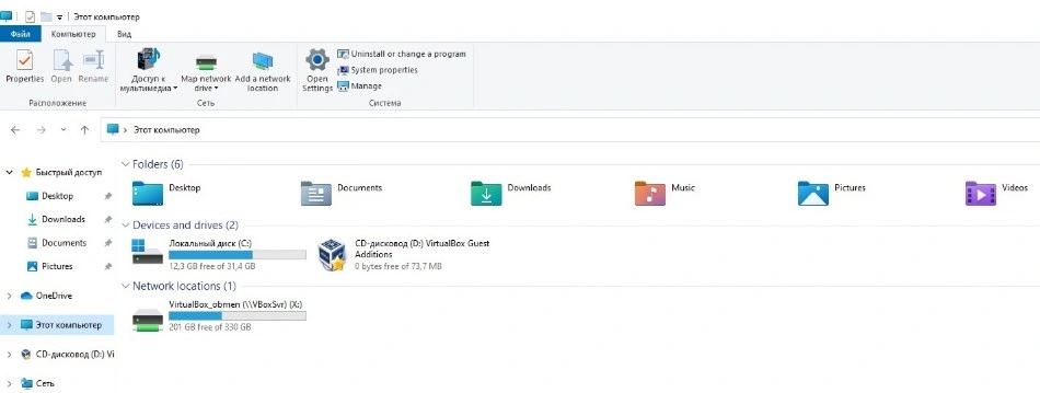 Подключаю папку для обмена c гостевой ОС и передаю через неё инсталяторы.