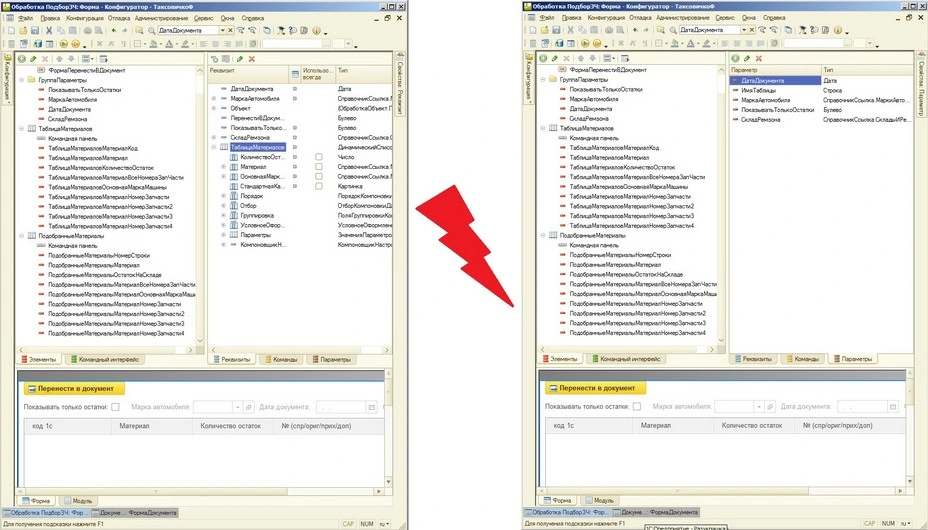В нетиповой складской конфигурации (управляемые формы) необходимо реализовать следующий функционал по подбору материалов (запасных частей) из документа «Заявка». Подбор должен осуществляться из справочника материалов с отображением графы «Остаток на складе» в количественном выражении.