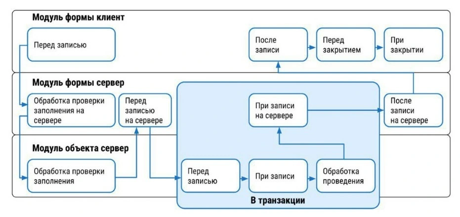 🔀 Последовательность событий при проведении документа 1С 8.3, 8.5: