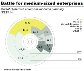 1C is very popular in many countries of the former Soviet Union (in Russia and CIS formed countries) have a very long time. But recently, the spread of the program increases, and in other countries throughout the world. 1C is a strong competitor SAP and other accounting and management software. 1C:Enterprise is more than just a solution automating fixed business rules. Rather it is a suite of software tools employed by users and developers. The system can be logically divided into two major components that are closely interrelated: an application and the platform on which the application runs.