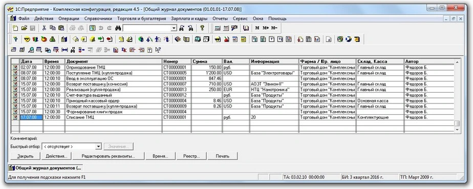 10. Архив 1Cv7.zip загружен в рабочий каталог базы данных. Можно перейти в режим 1С:Предприятие 7.7 и начать работу с данными.