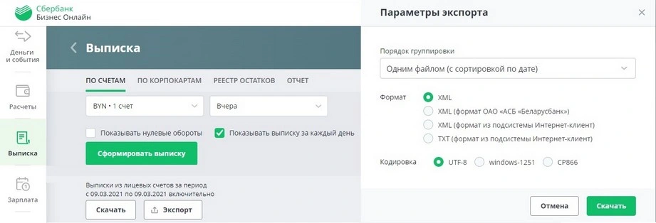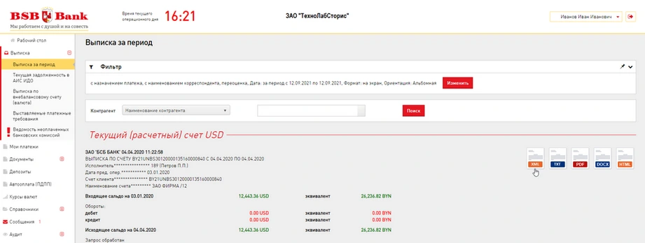 12.09.2021. Актуализирован формат загрузки выписки в формате *.txt для BSB Bank Интернет-банк бизнес-клиентам.