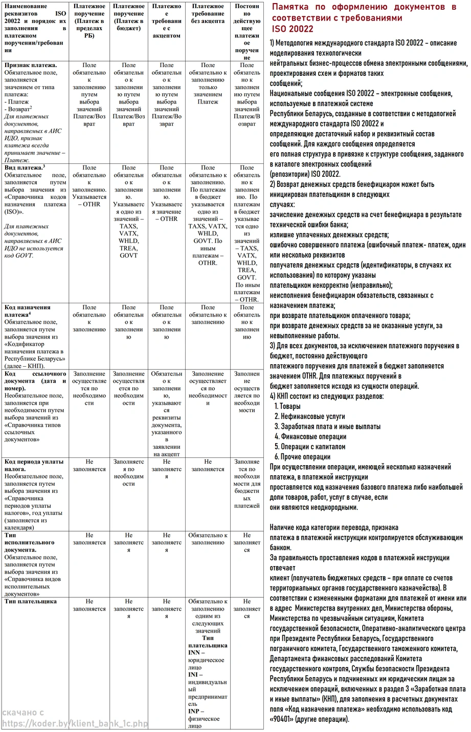 11.07.2022. Доработка форматов для всех банков в соответствии со стандартом ISO 20022 и для приминения кодификатора назначения платежа в Республике Беларусь (стандарт проведения расчетов СПР 3.01-2022).