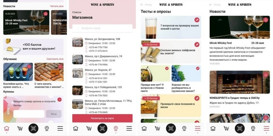 Вы станете членом клуба атмосферных напитков "WINE&SPIRITS" и получите возможность наслаждаться постоянной скидкой на все сопутствующие товары, а также зарабатывать бонусные баллы. Готовитесь к особому случаю и ищете напиток, способный удивить ваших гостей? Или, может быть, вы планируете провести уютный вечер дома и хотите создать атмосферу с помощью вашего любимого вина? В сети магазинов WINE&SPIRITS Вы сможете найти все, что вам нужно, а с нашим новым мобильным приложением каждое посещение станет еще более приятным. Просто предъявите QR-код кассиру и оплачивайте до 50% стоимости сопутствующих товаров бонусными баллами, а также получайте скидку.