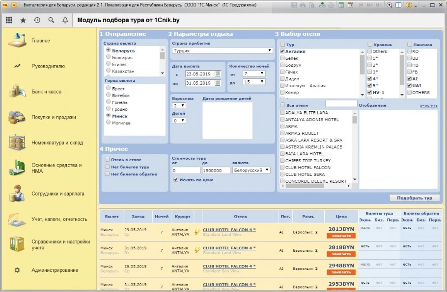 Модуль подбора тура в 1С