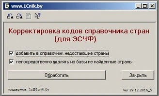 Обработка Корректировка кодов справочника стран (актуально для ЭСЧФ) для 1С 7.7