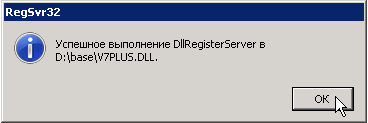 Для этого в командной строке ОС можно набрать команду regsvr32 "[Полный путь к DLL]\ v7plus.dll" и выполнить ее под правами администратора.