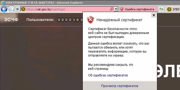 Ошибка подключения к сайту vat.gov.by
