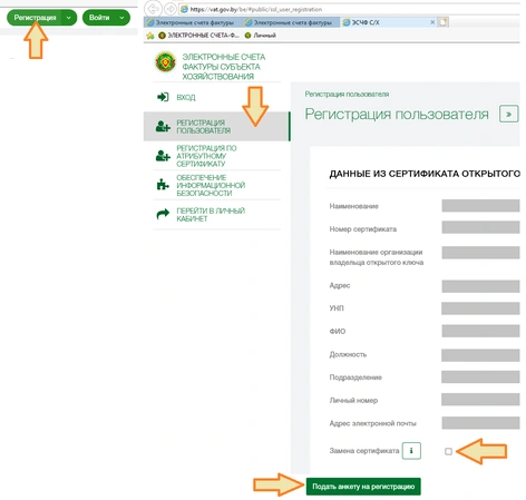 При замене сертификата на портале http://vat.gov.by при регистрации пользователя, получаем ошибку "По УНП и личному номеру пользователя найдено ноль или больше одной записи"