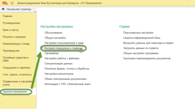 1. В разделе Администрирование откройте Интернет-поддержка и сервисы.