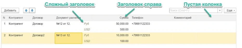 1С 8.3 Правила оформления табличной части на форме
