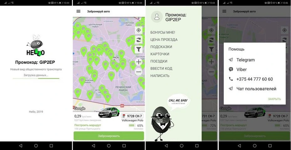 1.Скачиваете и устанавливаете приложение "Hello - каршеринг в Минске"