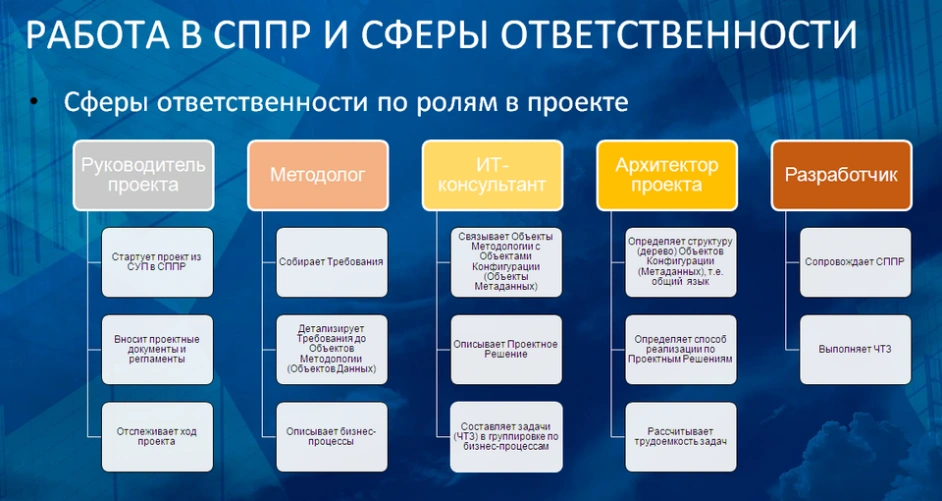 1. Упорядочить процесс описания состава ролей профилей доступа пользователей. Каждому участнику проектной команды: от руководителя проекта до конечного разработчика конечной функции системы должно быть известно, где описан текущий состав ролей каждого из “нетиповых” профилей доступа, разрабатываемых на проекте. Эту информацию необходимо использовать при подготовке баз каждого из контуров: разработки, тестирования (сдачи работ) и промышленной эксплуатации. Недопустима ситуация, при которой:a. Разработчик в ходе разработки и собственного тестирования “накидал” себе свой состав ролей в тестовые профили доступа, в случае ошибки исправил состав ролей в собственной базе, но никому ничего не сообщил, в надежде что или “методологи сами потом разберутся”.b. Методолог, ответственный за функциональную область, аналогично разработчику, прошел заново долгий путь проб и ошибок по наполнению нетиповых профилей доступа и выдохнул с облегчением “здесь у меня все хорошо”, остается потом повторить этот состав ролей в промышленной базе. Дело в том, что соседний методолог по другой, но смежной функциональной области, может в то же самое время проходить ровно тот же путь, натыкаясь на те же ошибки, делая даже возможно собственные выводы.