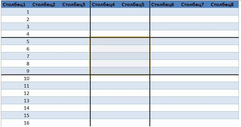 // Изначально для колонок идущих правее последней колонки (т.е. с номером больше, чем ШиринаТаблицы) Границы не отображаются.
