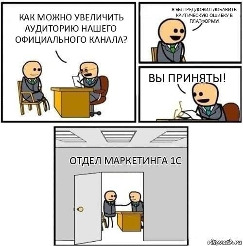 Крупнейшая коллекция смешных (и не очень) картинок на тему 1С. Изображения тщательно и с любовью добываются с просторов интернета, соц.сетей и тематических мессенджеров. Собираю во имя культа и популяризации данного бренда, ибо покланяюсь ему уже много лет. А еще 1С не даёт мне умереть с голода. Всем желаю добра и получить удовольствия от увиденного! Живите с юмором:)