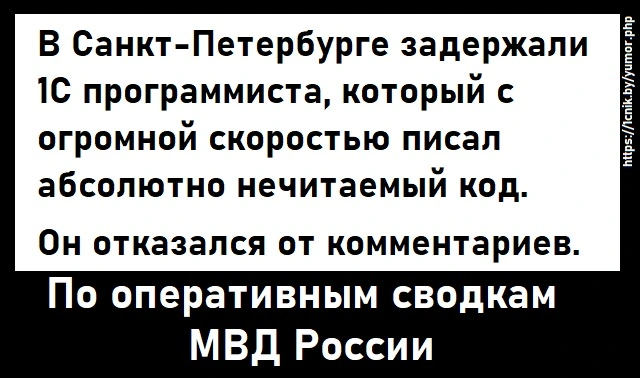 Внимание! Важно! Пополнение раздела "Коллекция юмора и приколов про 1С" прекращено из-за ограничений хостинг провайдера. Публикация новых картинок будет продолжаться только в telegram-канале Желтый юмор. Ссылка: https://t.me/yellow_humor